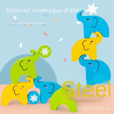Children's wooden stacked high building blocks elephant balance stacked music educational